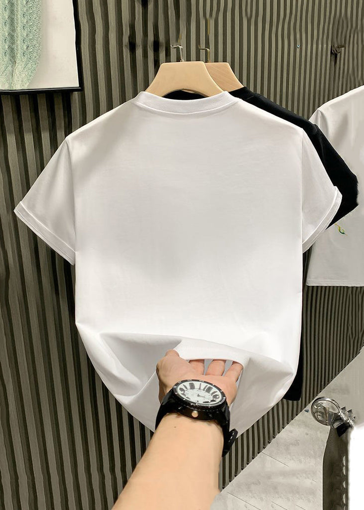 Plus Size White Embroideried Solid Cotton Mens Neutral Tshirt Summer LK043
