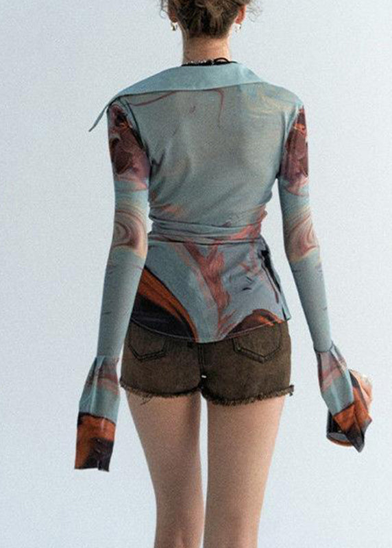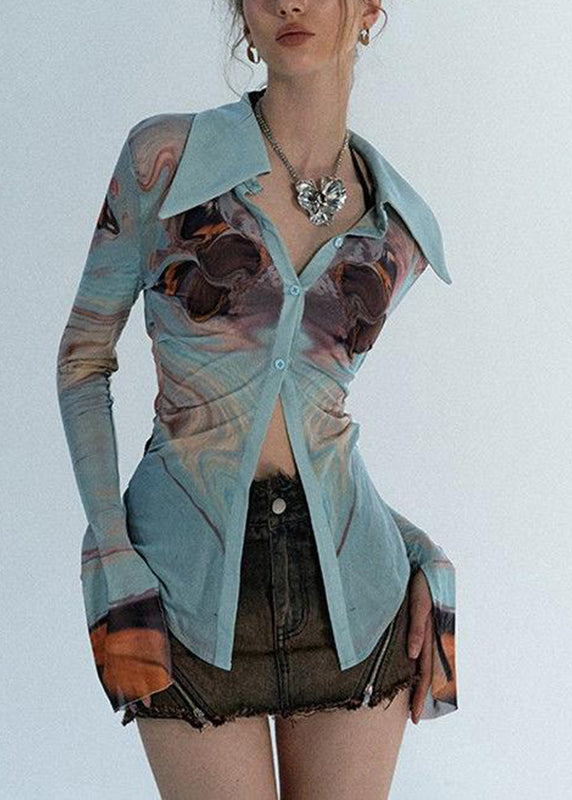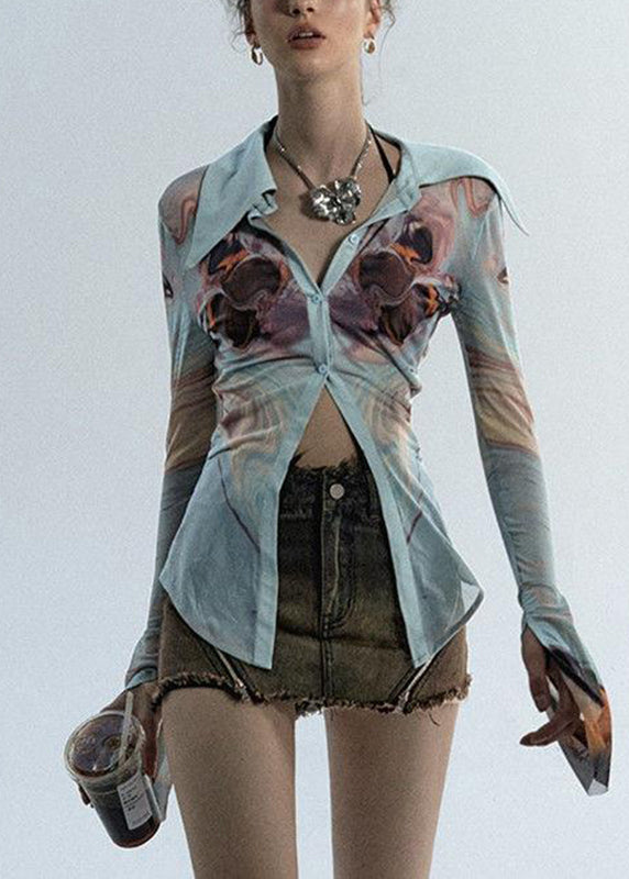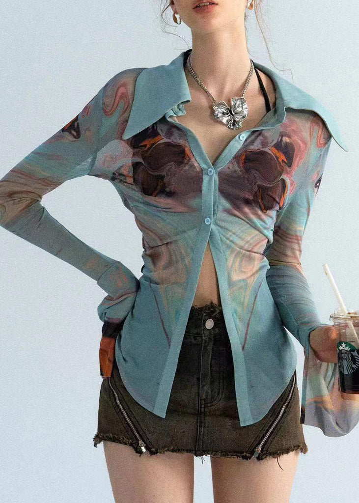 The Sexy Haze Blue Peter Pan Collar Print Tulle Shirts Long Sleeve UU1045 is evocative, to say the least, but that's why you're drawn to it in the first place.
