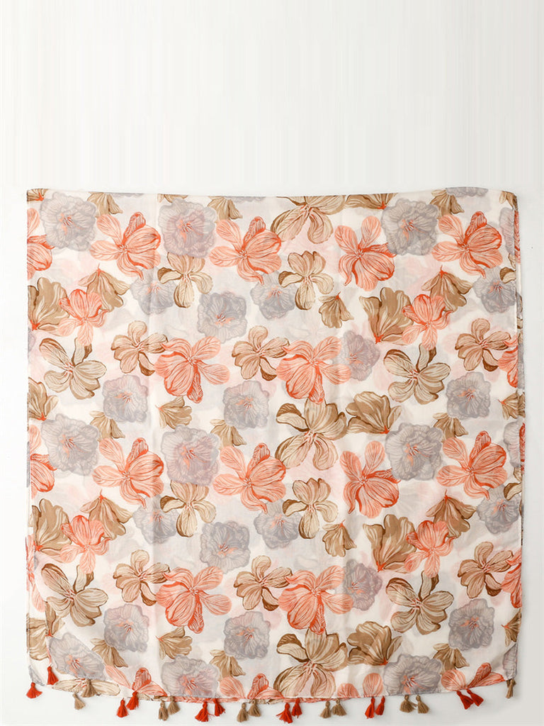 Spring Artsy Flower Print Tassel Shawl Scarf CX017