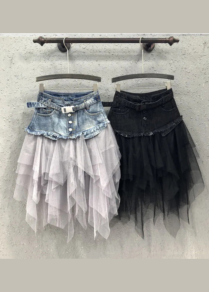 Style Blue Asymmetrical Tulle Patchwork Denim Skirts Summer QQ1052