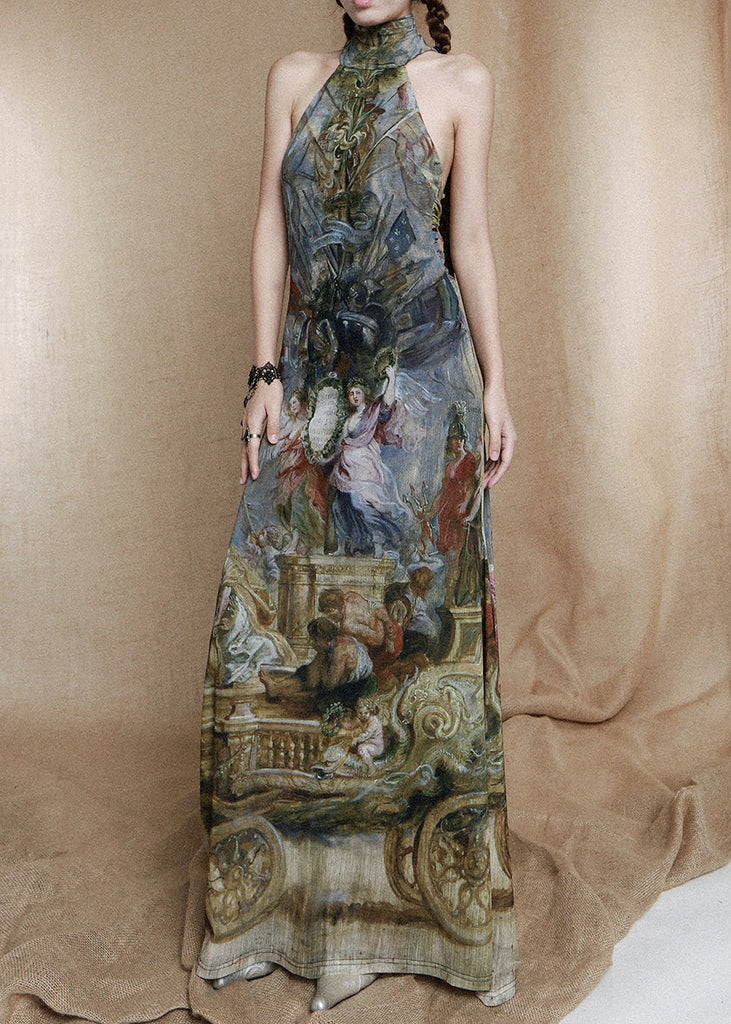 Indulge in the exquisite harmony of colors with our one-of-a-kind Colorblock Turtleneck Print Cotton Long Dress Sleeveless. Crafted with the finest materials, this dress is a statement of sophistication and exclusivity.