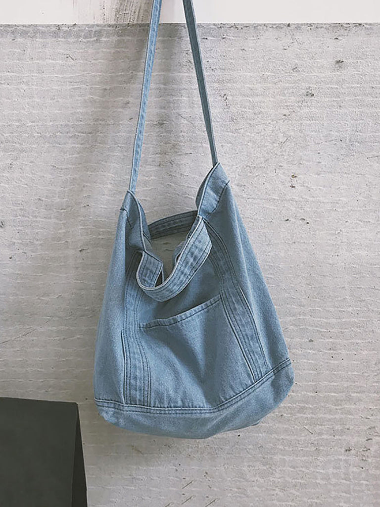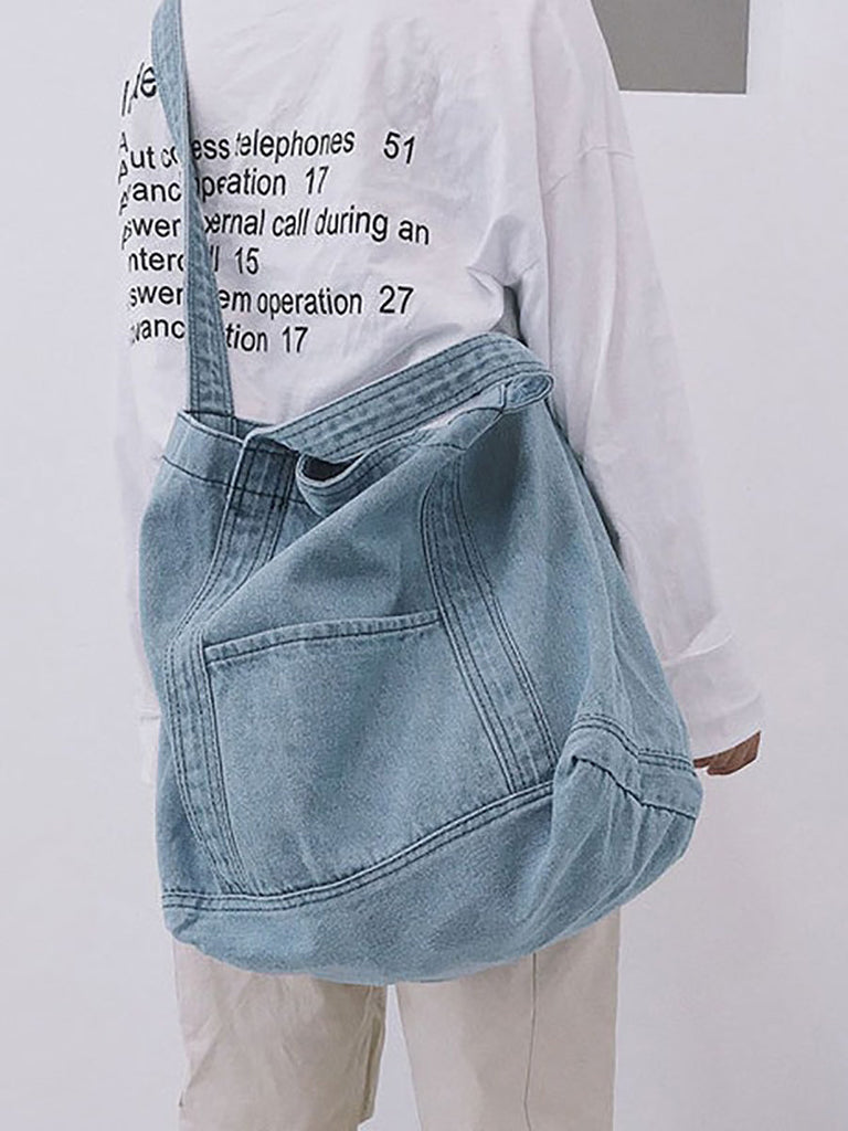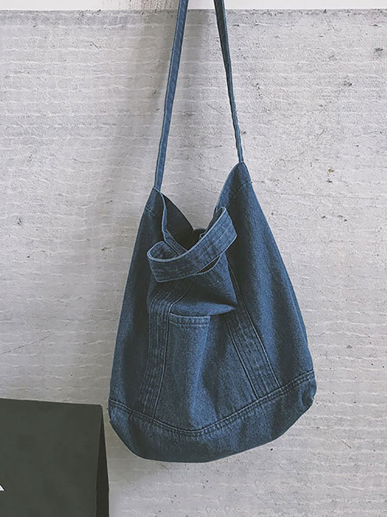 Vintage Solid Denim Spliced Shoulder Bag Handbag OP1038