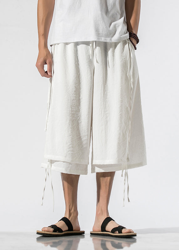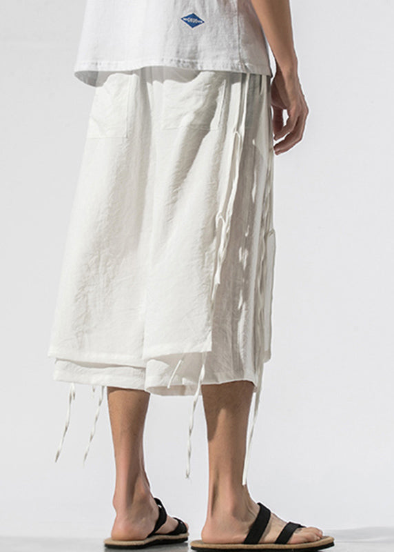 These White Pockets Elastic Waist Men Crop Pants are designed for the summer season. They feature a comfortable elastic waistband and practical pockets.