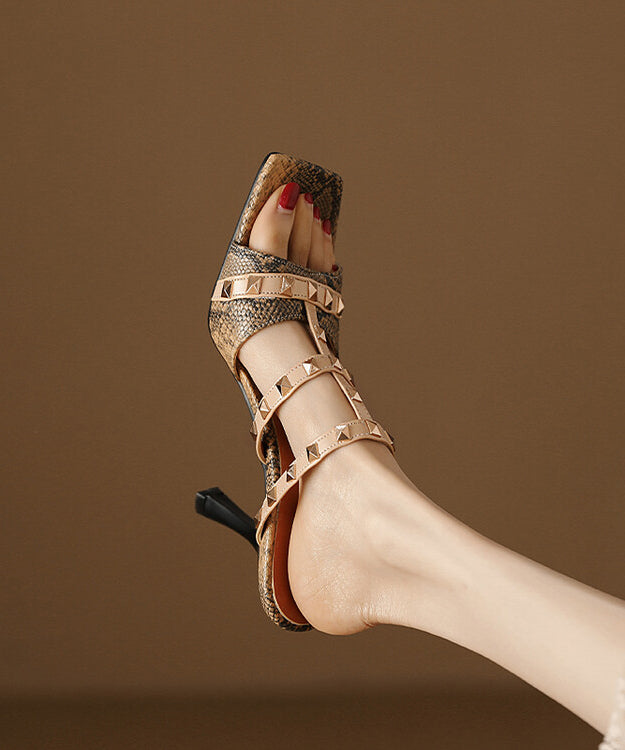 Wine Red Peep Toe High Heel Slippers Stylish Splicing Rivet XC1023