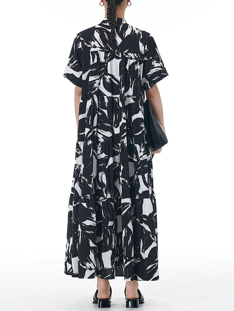 Women Artsy Flower Colorblock Loose Tiered Dress CX048