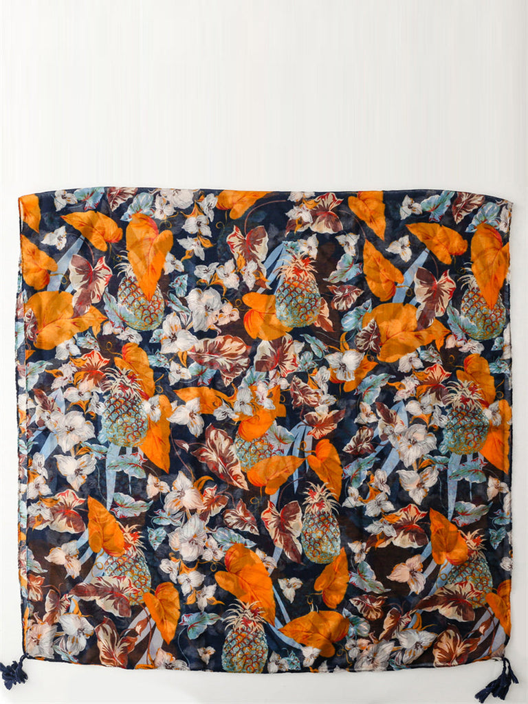 Women Artsy Flower Print Tassel Travel Shawl Scarf FG1003