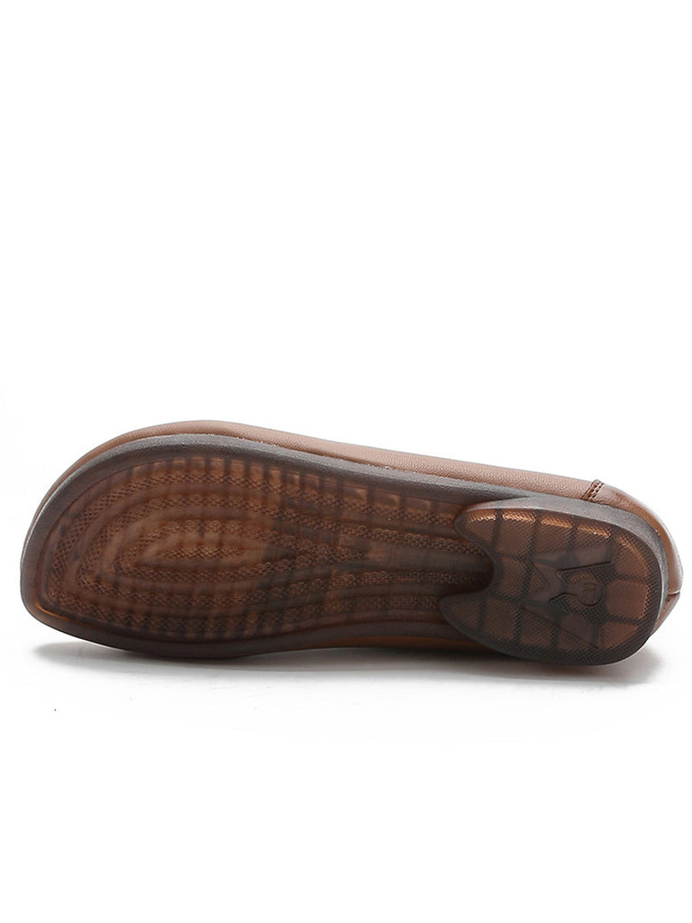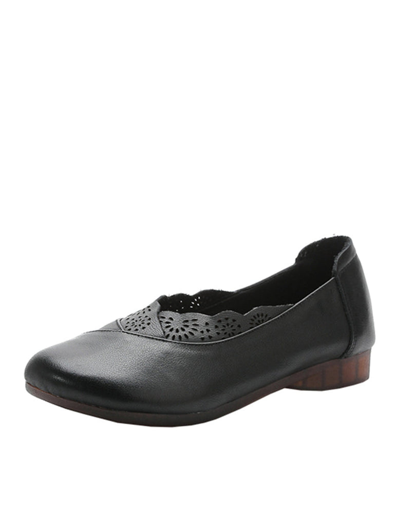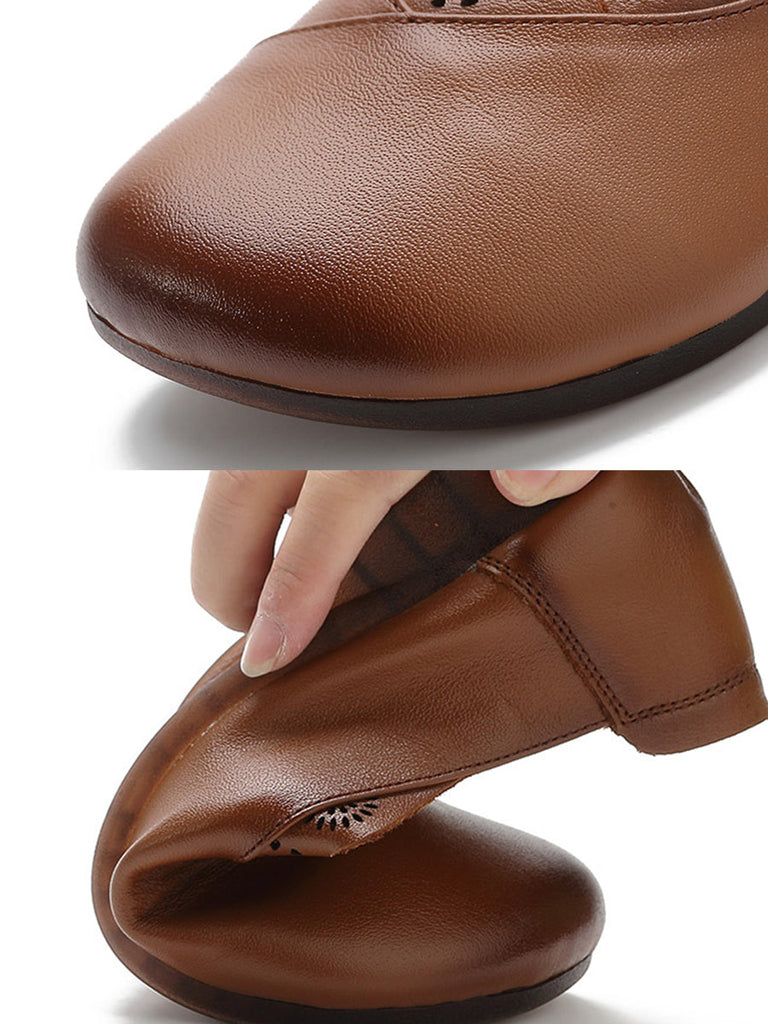 Women Artsy Solid Soft Leather Spliced Low Heel Shoes RR1048