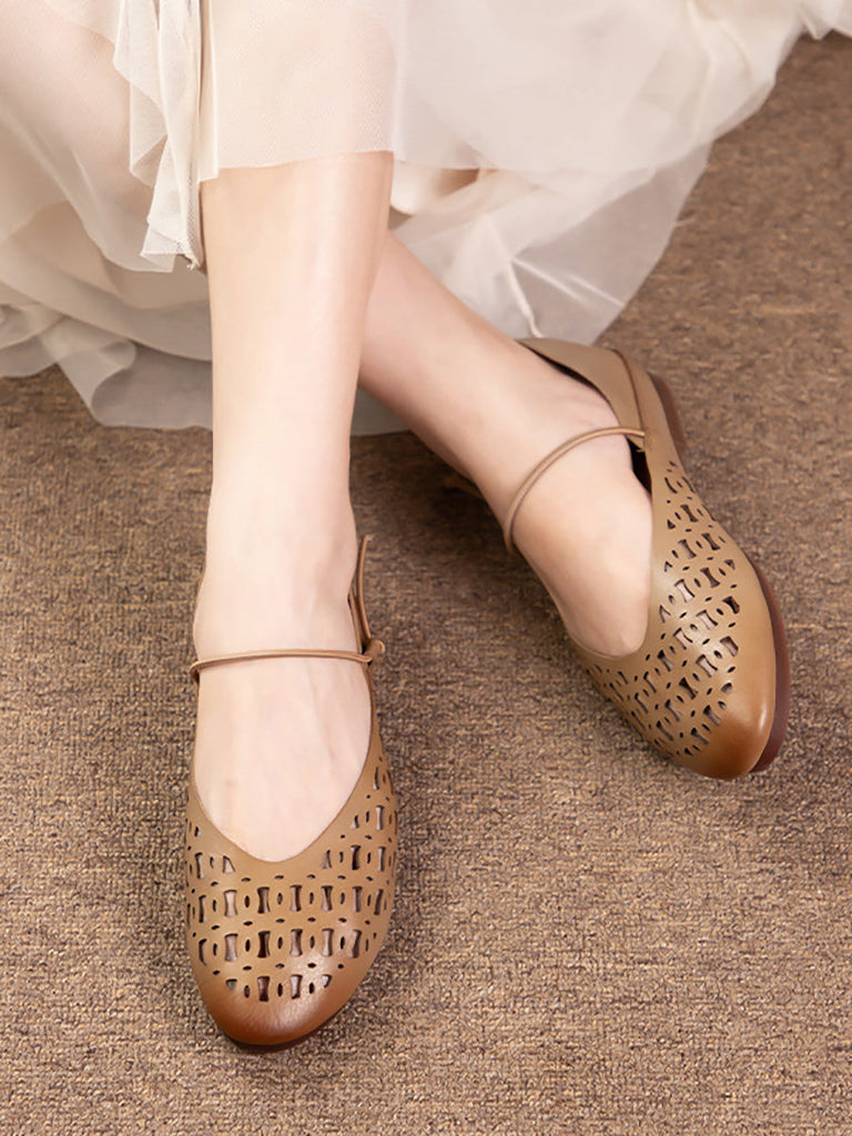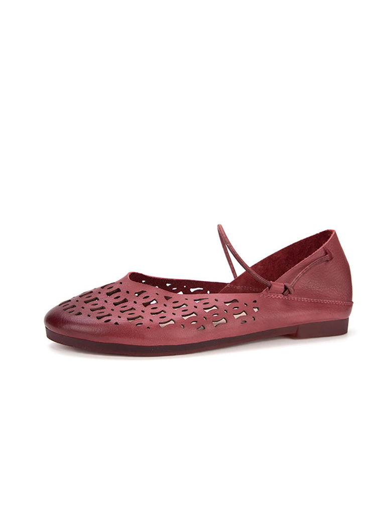 Women Artsy Summer Genuine Leather Cutout Flat Shoes LL052