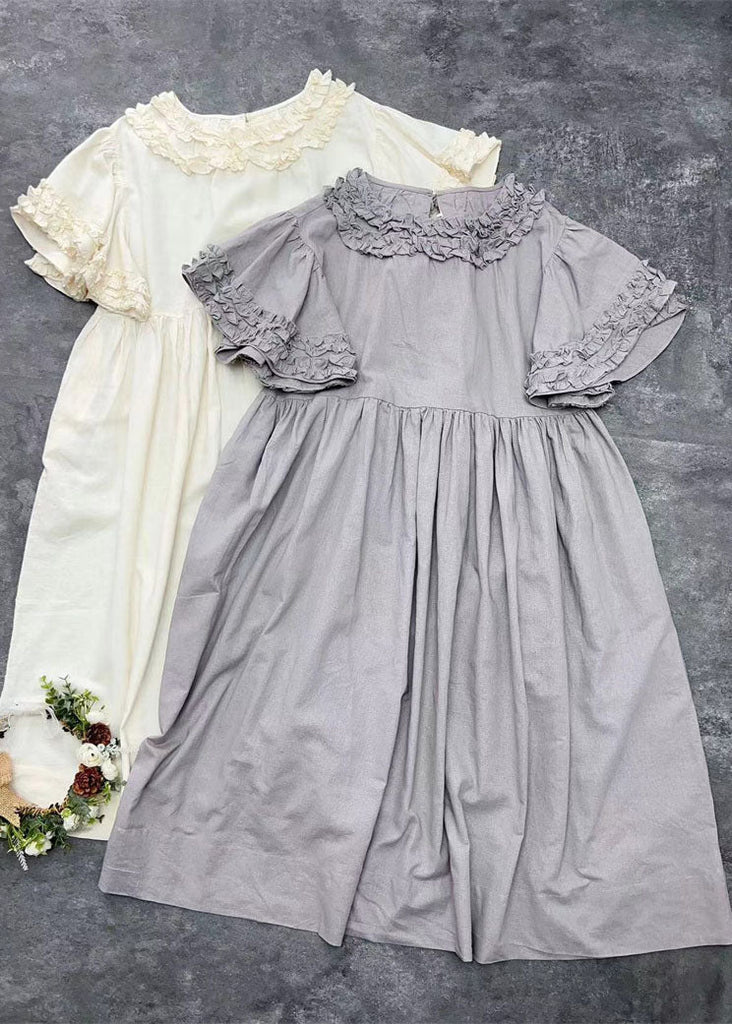 Women Beige Ruffled Patchwork Cotton Long Dresses Summer FF008