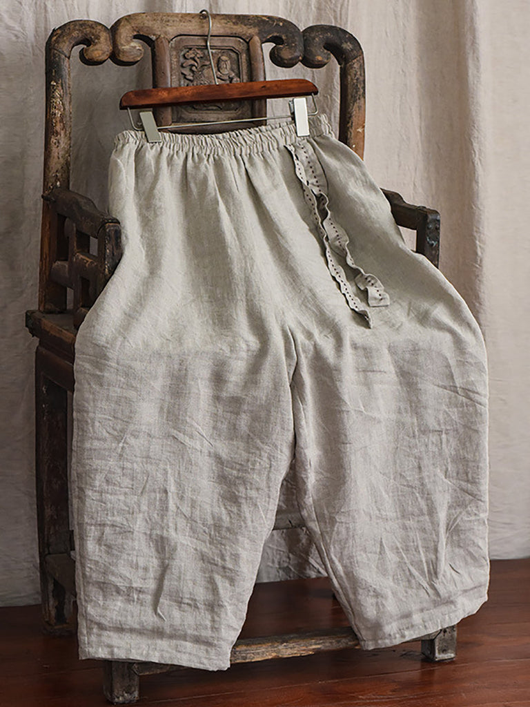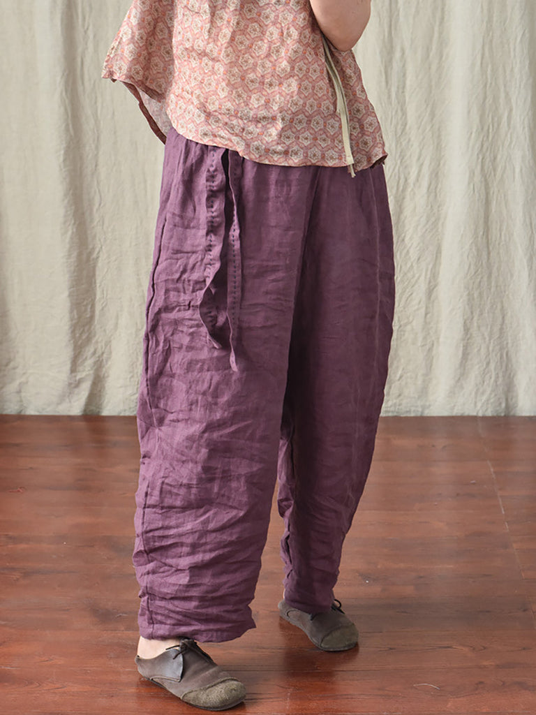 Women Casual Solid Drawstring Loose Linen Turnip Pants CX045