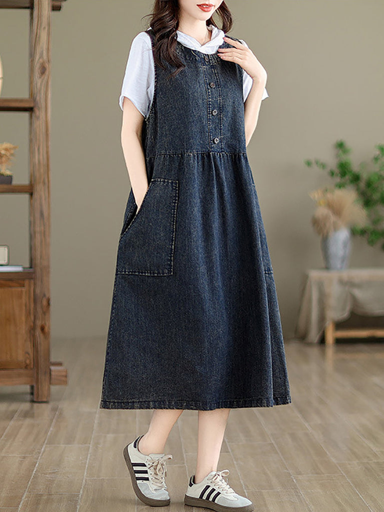 Women Casual Summer Solid Denim Vest Dress BN1012