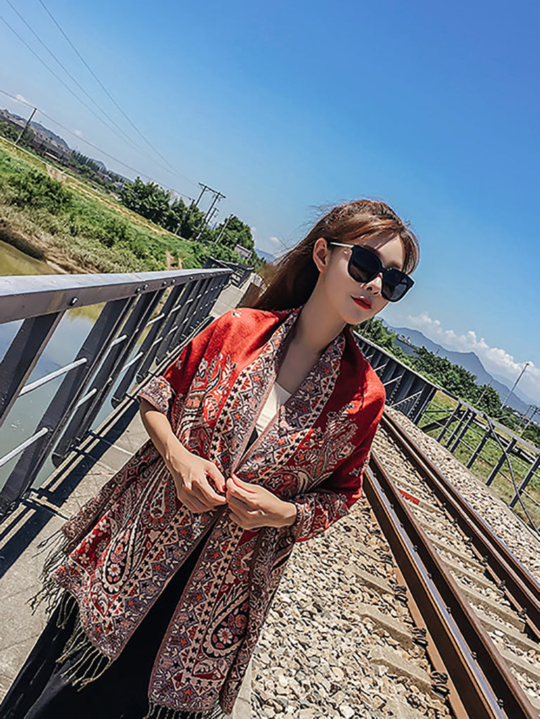 Women Ethnic Flower Taasel Shawl Scarves FG1021