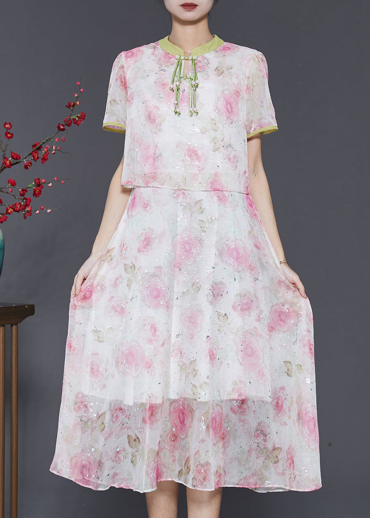 Women Pink Tasseled Patchwork Print Silk Dress Summer SD1058
