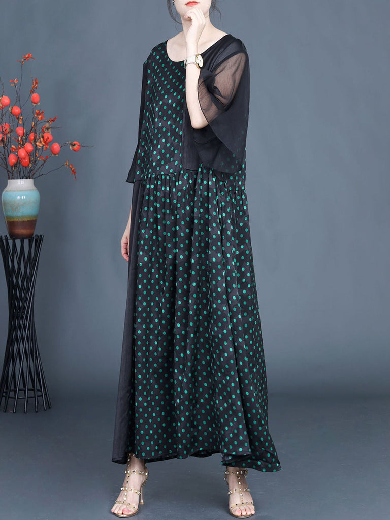 Women Summer Artsy Dot Spliced Loose Maxi Dress CV1048