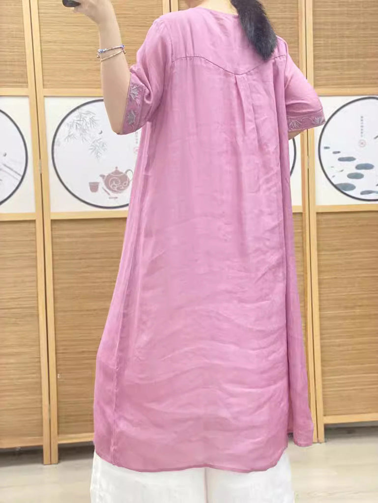 Women Summer Artsy Embroidery Ramie Loose Drses HH037