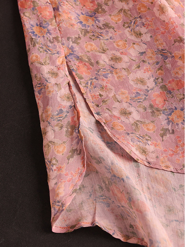 Women Summer Artsy Floral Spliced Ramie Long Shirt BN1007