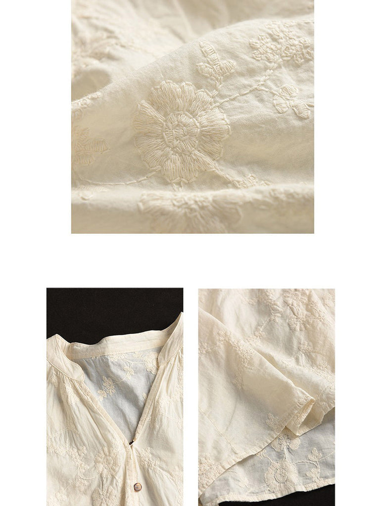 Women Summer Artsy Flower Jacquard Thin Button Cotton Shirt CX037