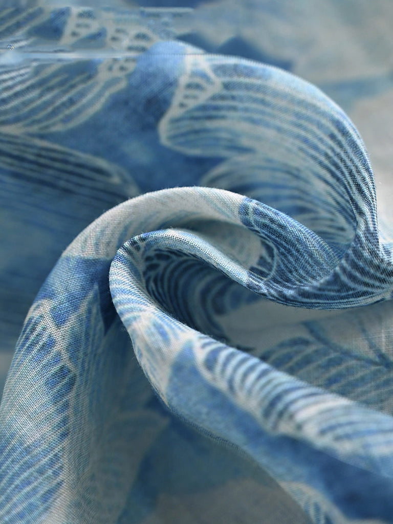 Women Summer Artsy Flower Print Loose Ramie Dress OO1025