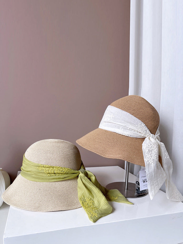 Women Summer Artsy Jacquard Ribbon Sunproof Hat FD030