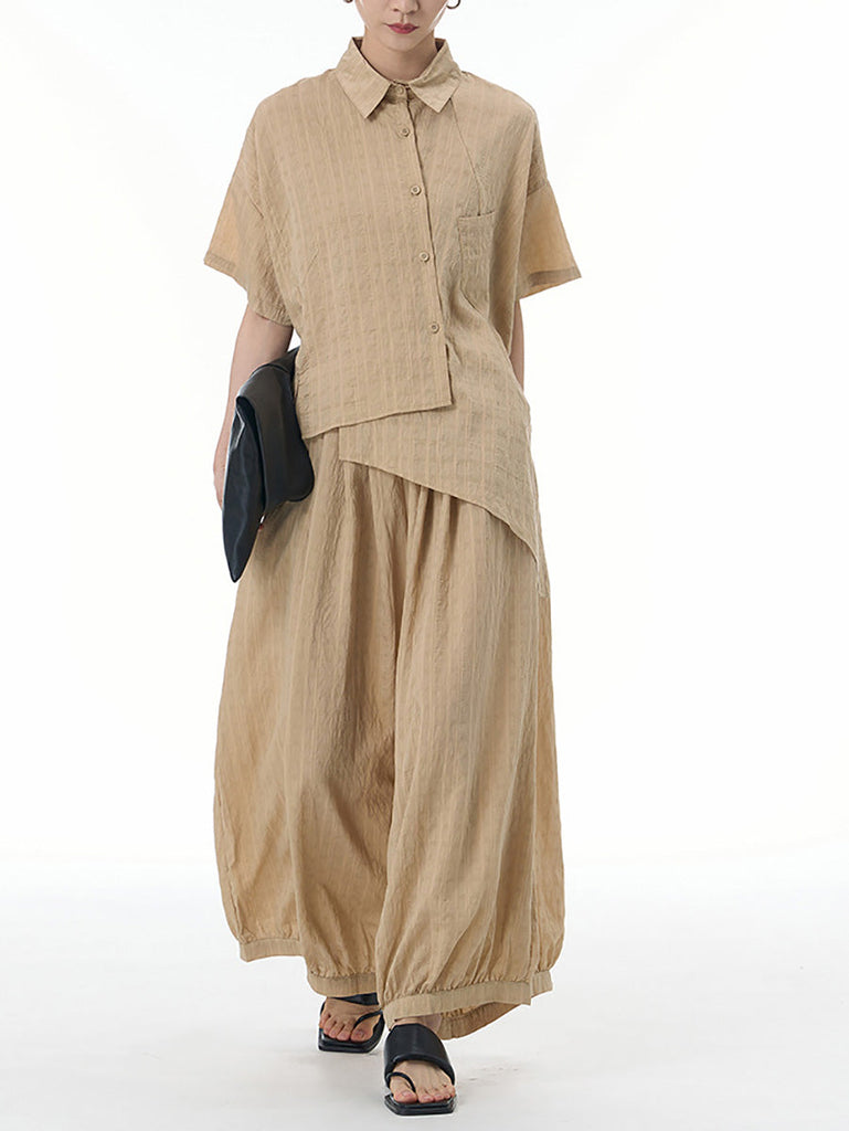 Women Summer Artsy Plaid Button-up Irregular Hem Shirt CX033
