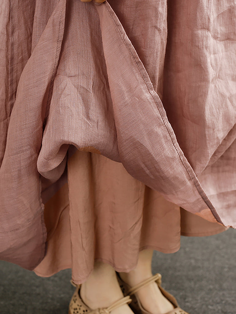 Women Summer Artsy Pure Color V-Neck Ramie Dress HH018