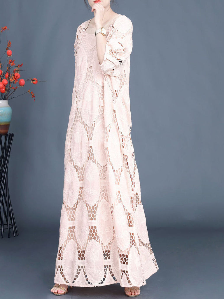 Women Summer Artsy Solid Cutout Maxi Dress FG1038