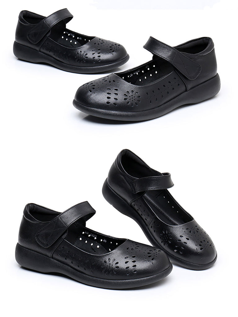 Indulge in luxurious comfort and style with our Women Summer Artsy Solid Leather Cutout Flat Shoes. Crafted from supple leather and featuring intricate cutouts for breathability, these flats offer a sleek and elegant look while providing a soft and comfortable sole for all-day wear. Elevate your summer wardrobe with this must-have pair.