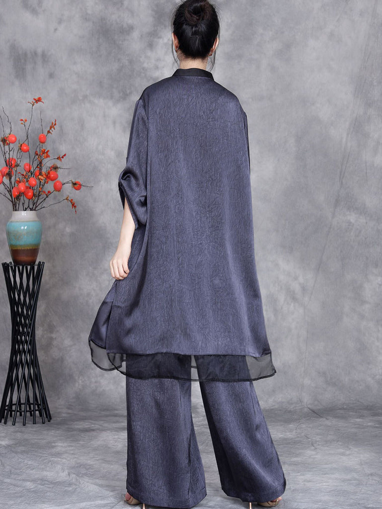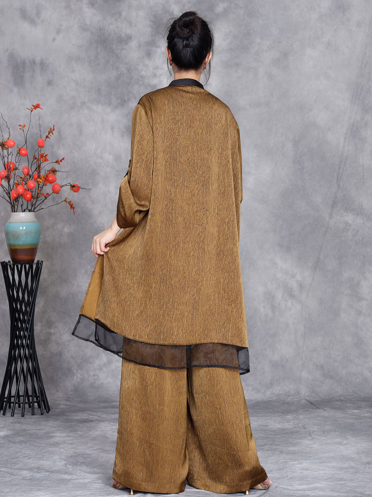 Women Summer Artsy Spliced Loose Button-up Shirt+Pants OP1005