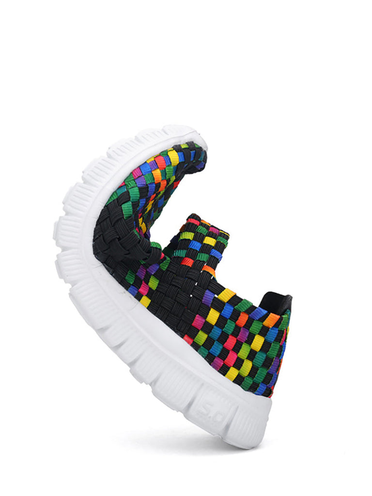 Women Summer Casual Colorblock Weave Flat Shoes RR1017