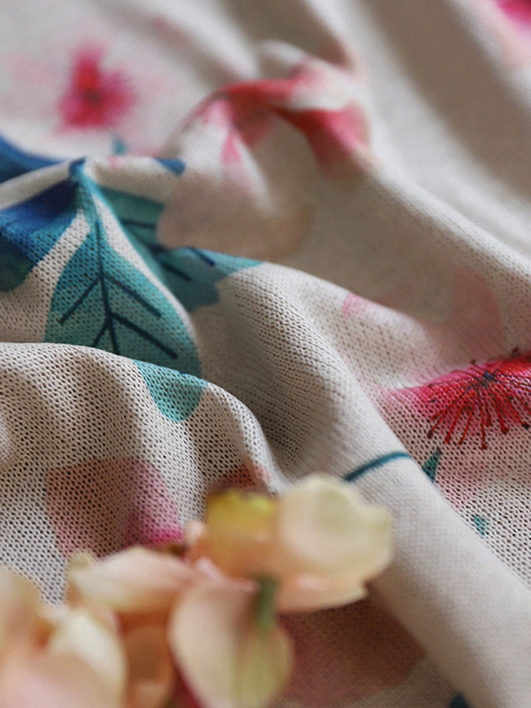 Women Summer Casual Flower O-neck Knitted Shirt II1044