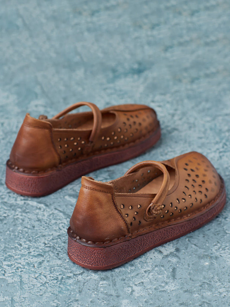 Women Summer Casual Leather Spliced Cutout Flat Sandals FG1029
