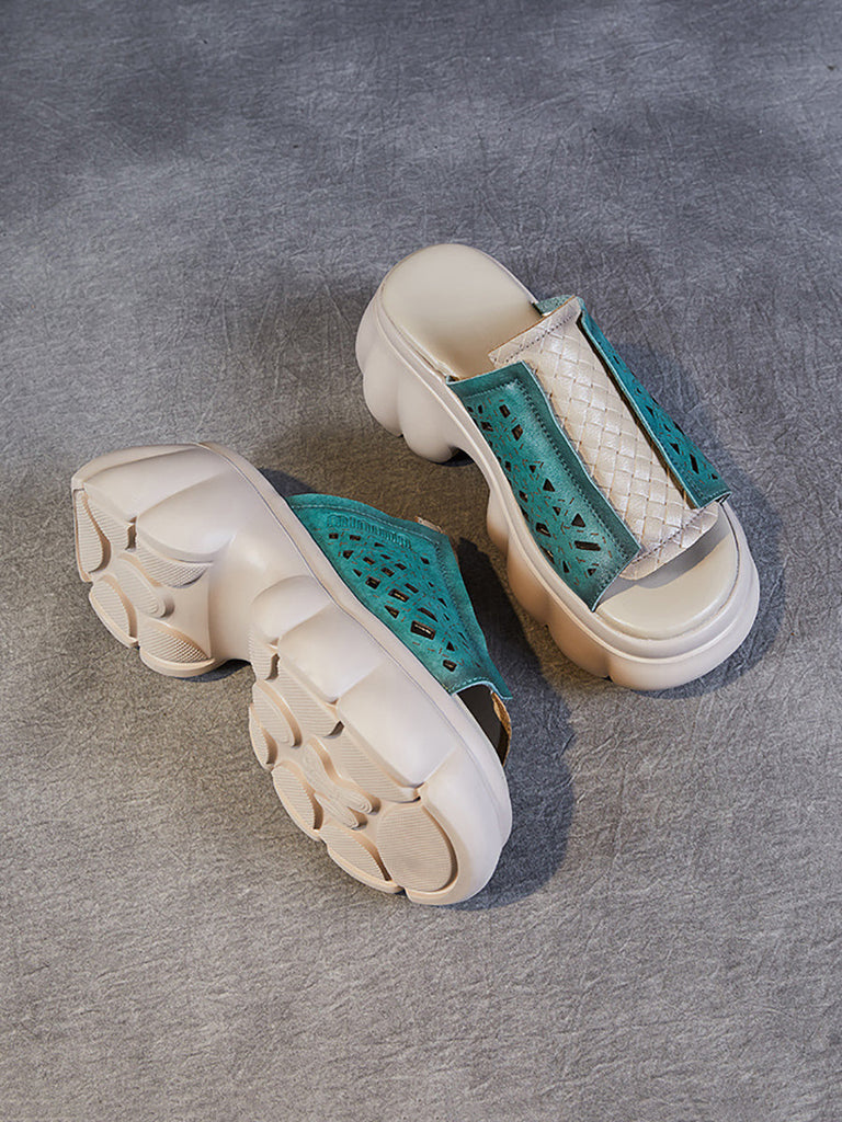 Women Summer Casual Leather Spliced Platfrom Slippers CV1033