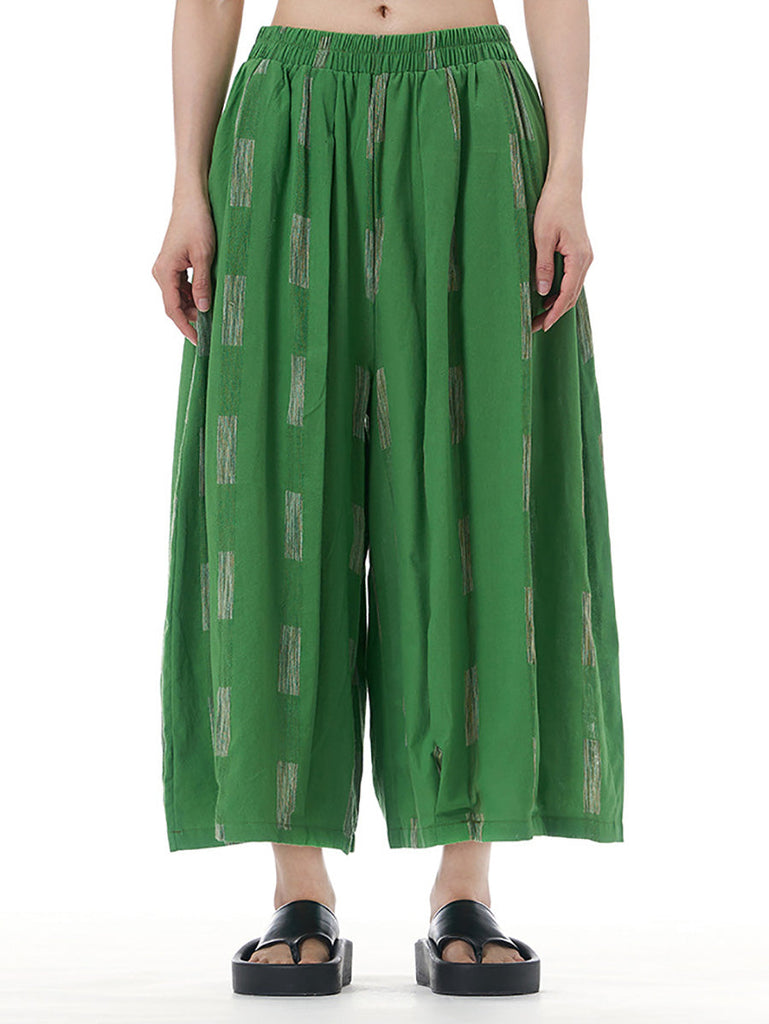 Women Summer Casual Print Wide-leg Cotton Pants FD033