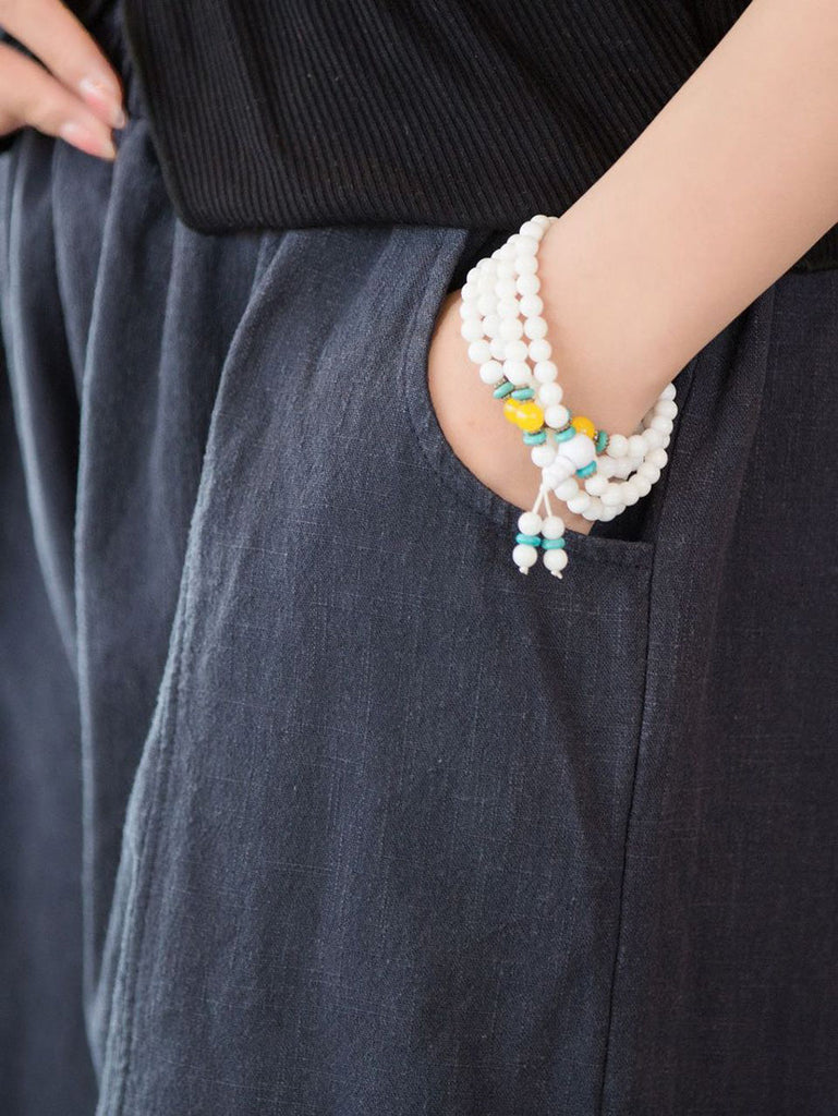 Women Summer Casual Ramie Cotton Solid Fifth Pants HH032