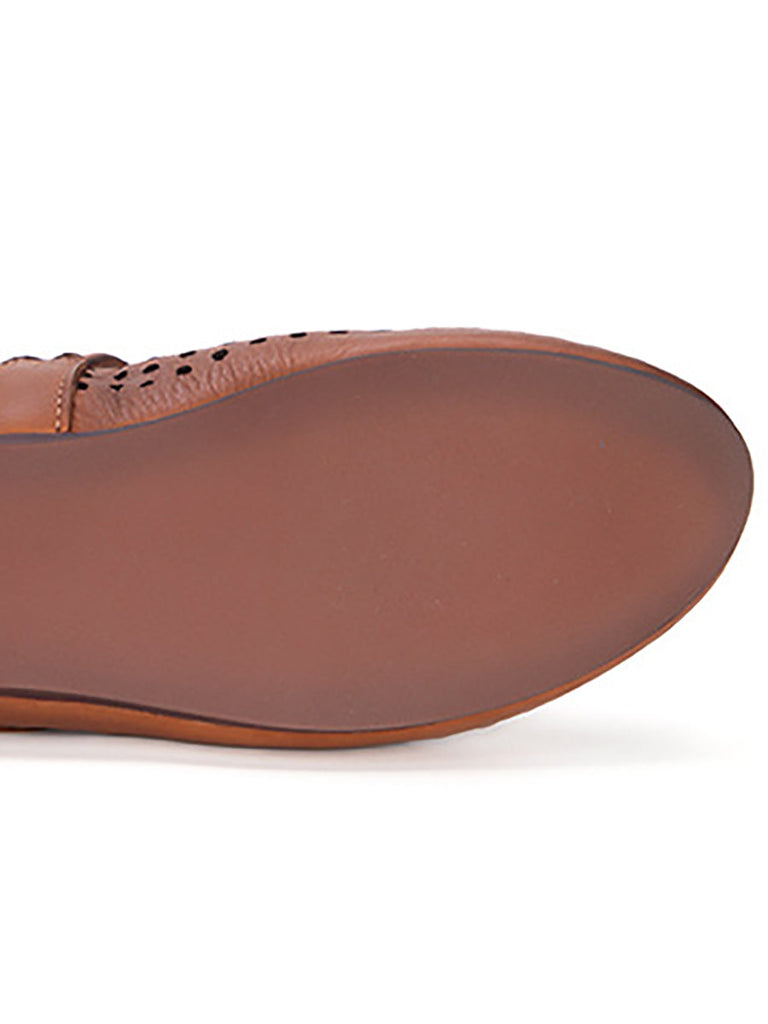Women Summer Casual Solid Leather Cutout Sandals II1023
