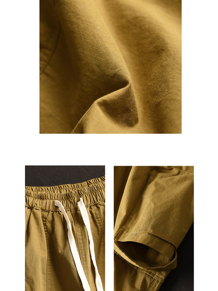 Women Summer Casual Solid Pocket Loose Cotton Fifth Pants FD022