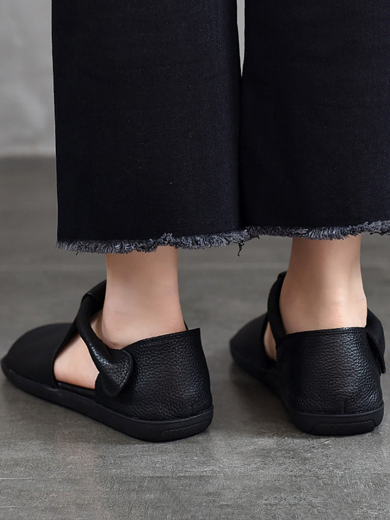 Women Summer Casual Solid Soft Leather Flat Sandals CC003