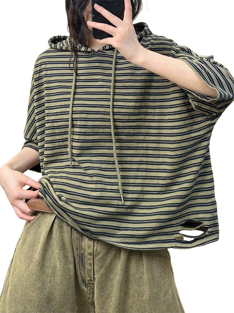 Every product is unique, just like you. If you're looking for a product that fits the mold of your life, the Women Summer Casual Stripe Hooded Cotton Shirt OP1056 is for you.