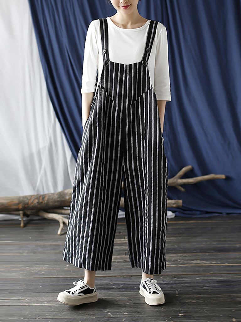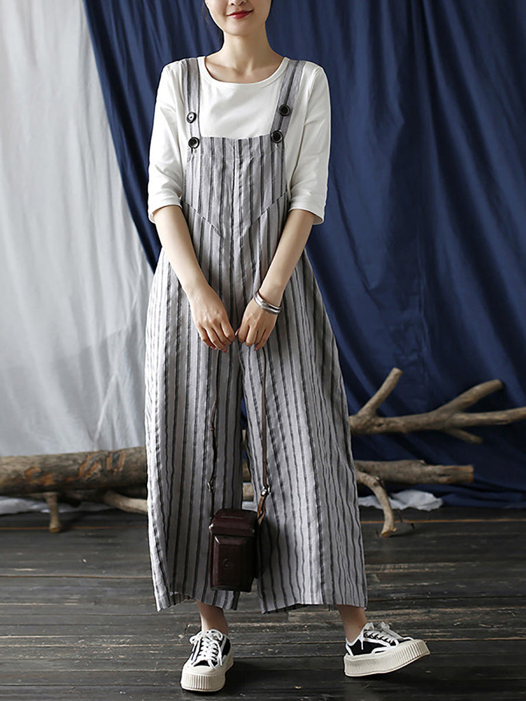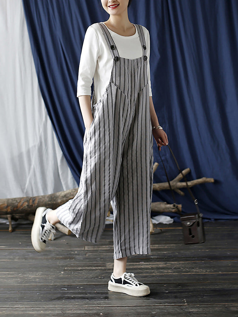 Life is too short to live without the Women Summer Casual Stripe Wide-leg Linen Jumpsuits LL008. Be happy. Be Content. Be Satisfied.