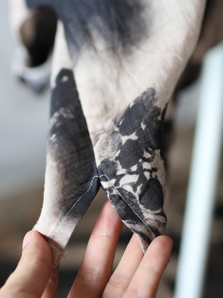 Women Summer Ethnic Ink-print Button-up Ramie Shirt FD021