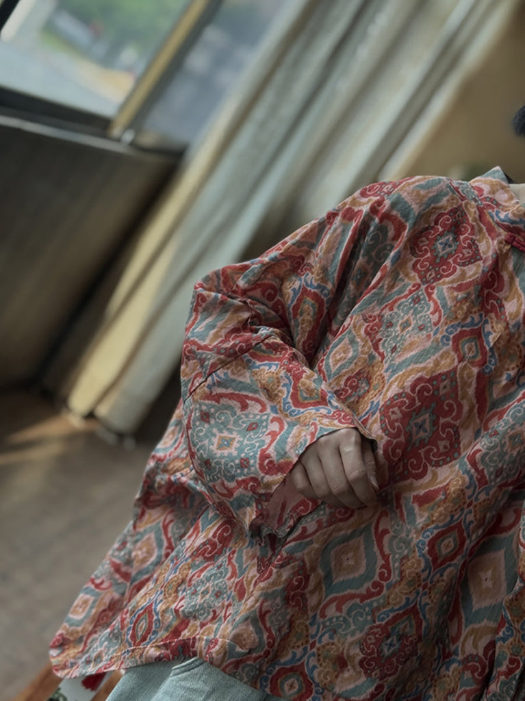 Women Summer Ethnic Print Ramie Loose Shirt CX059