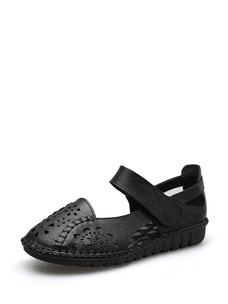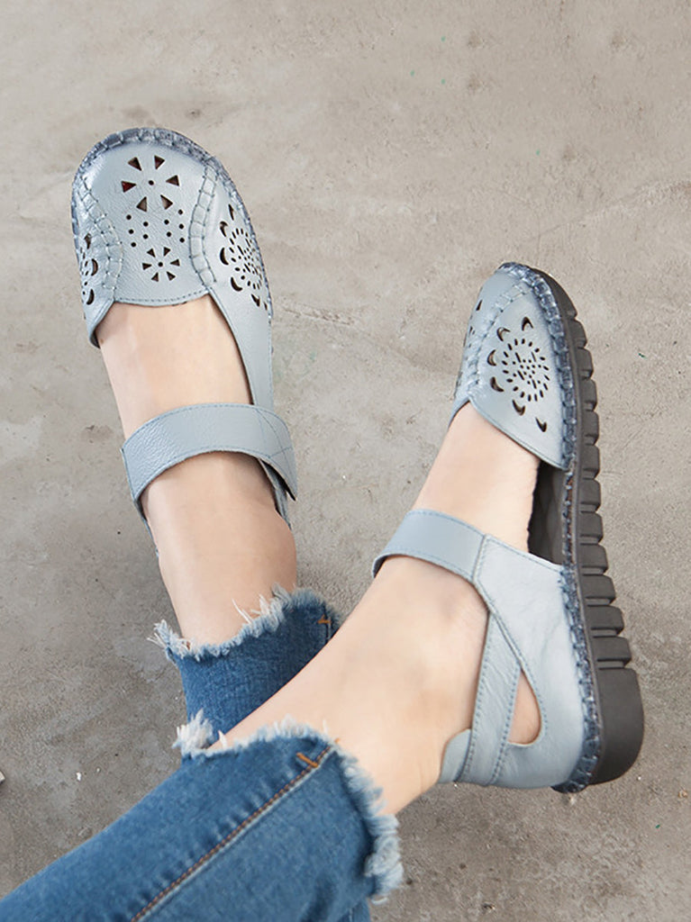 Women Summer Leather Cutout Solid Low-Heel Sandals CV1008
