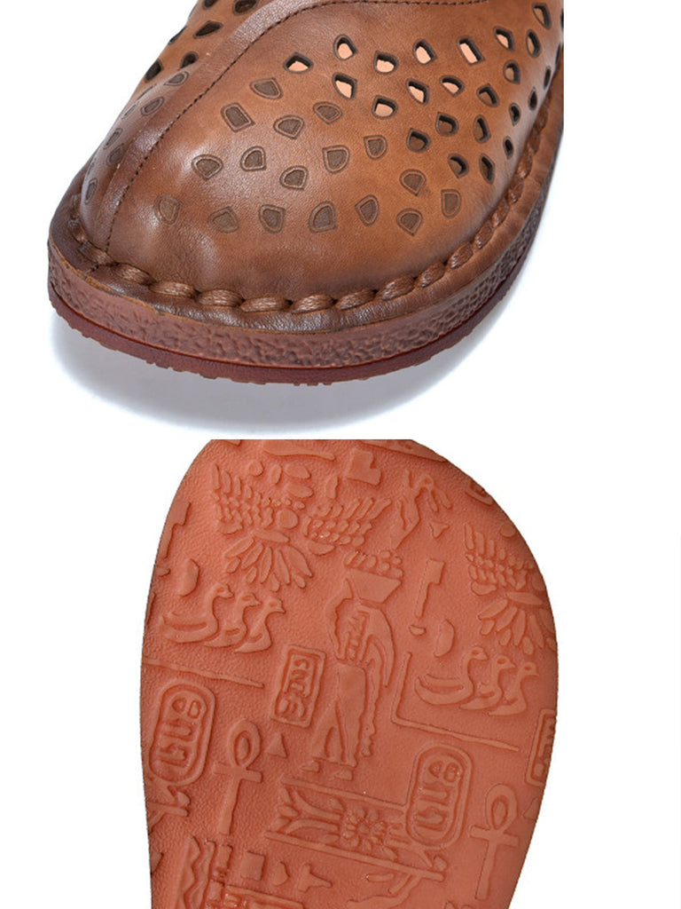 Women Summer Leather Solid Cutout Leather Flat Shoes OO1018