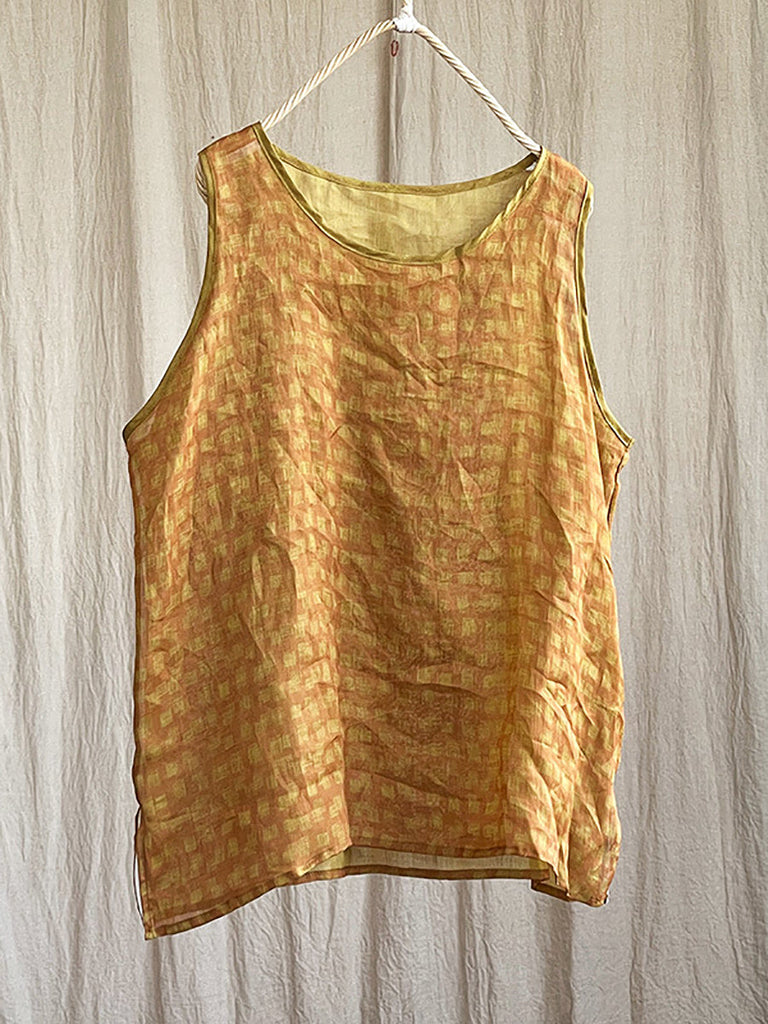 Plus Size Women Summer Plaid Artsy Thin Ramie Vest HH055