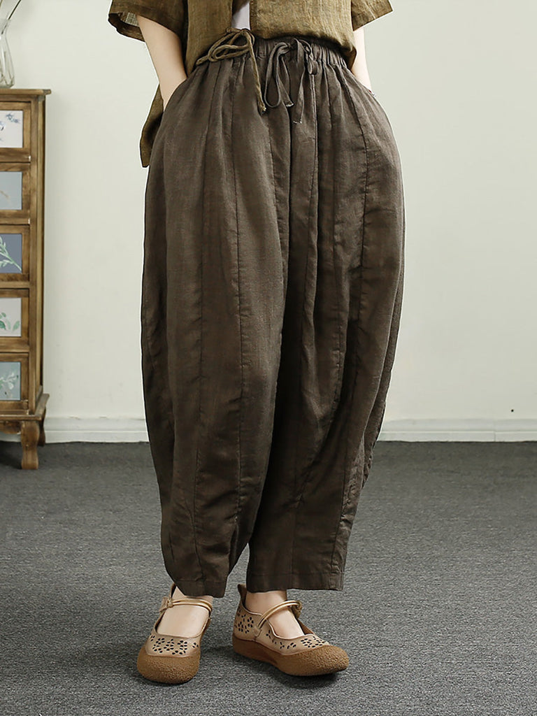 Women Summer Retro Spliced Harem Linen Pants CX010