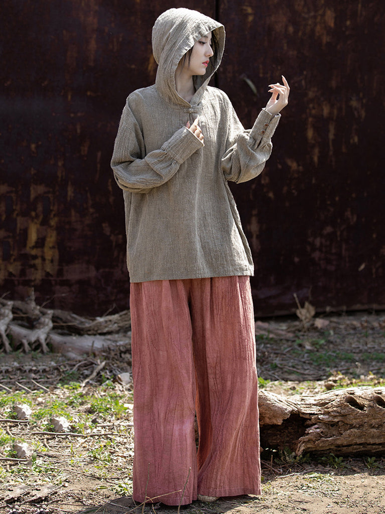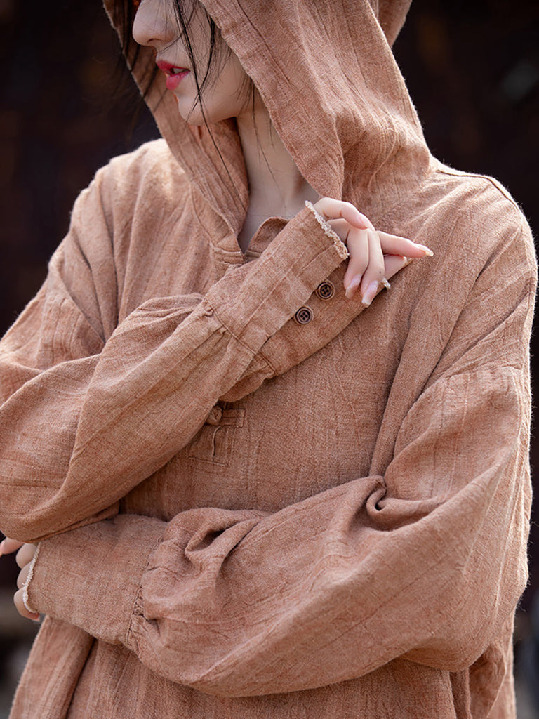 Women Summer Retro Tie-dye Linen Hooded Shirt FG1045