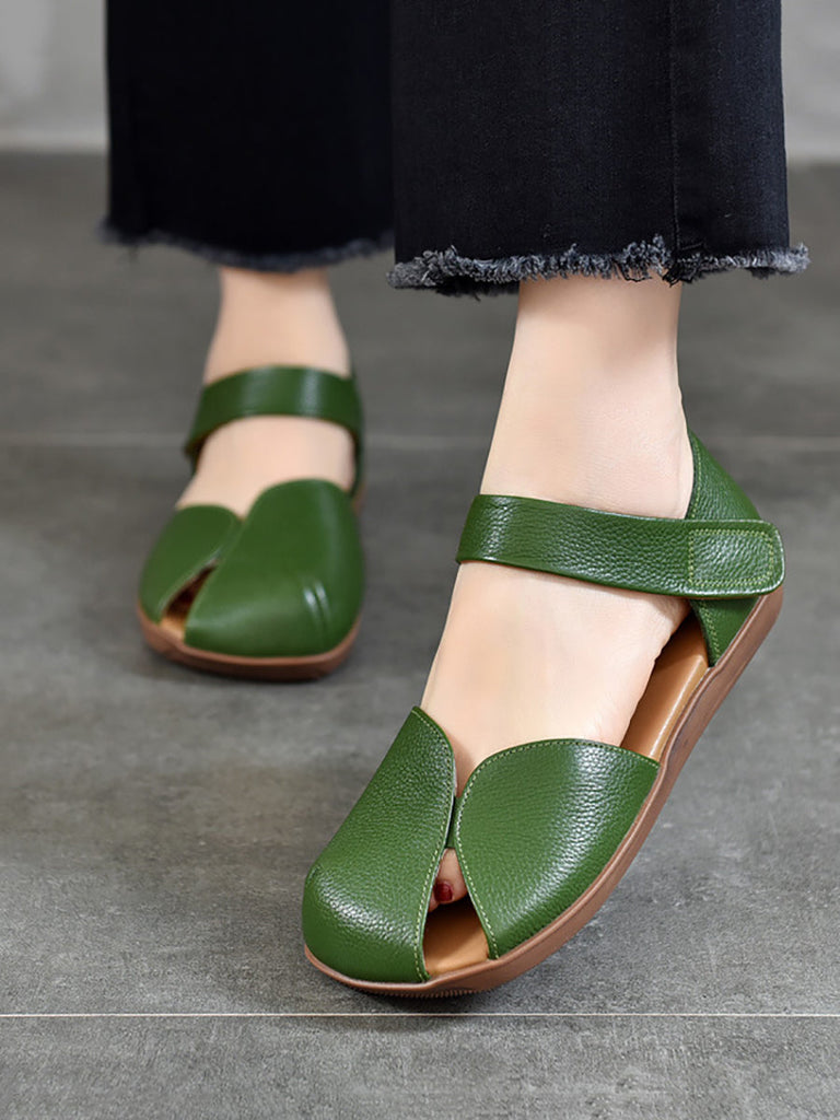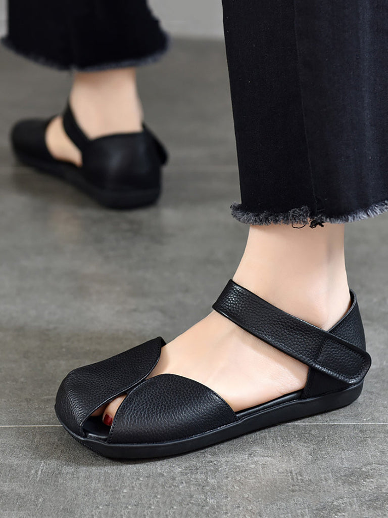 Women Summer Solid Leather Soft Spliced Flat Sandals ZZ1025