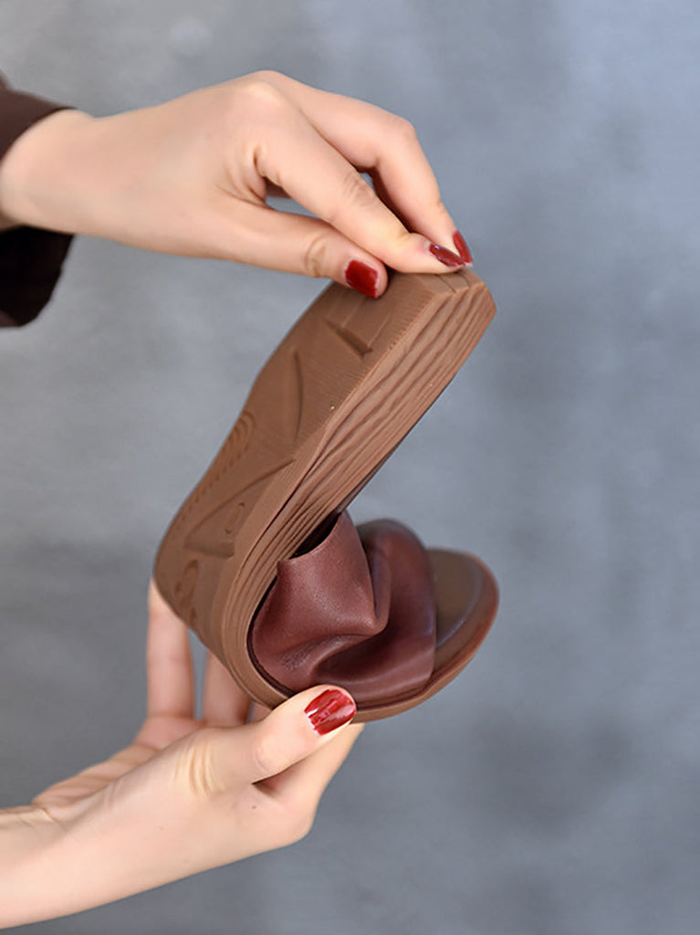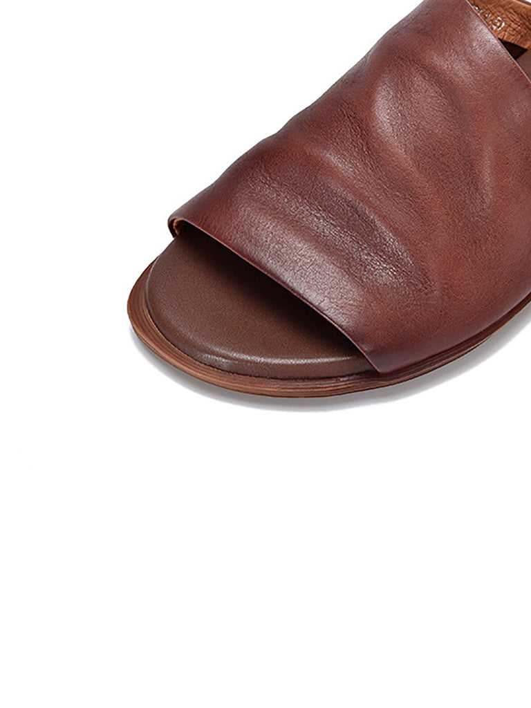 Women Summer Solid Soft Leather Flat Sandals RR1018