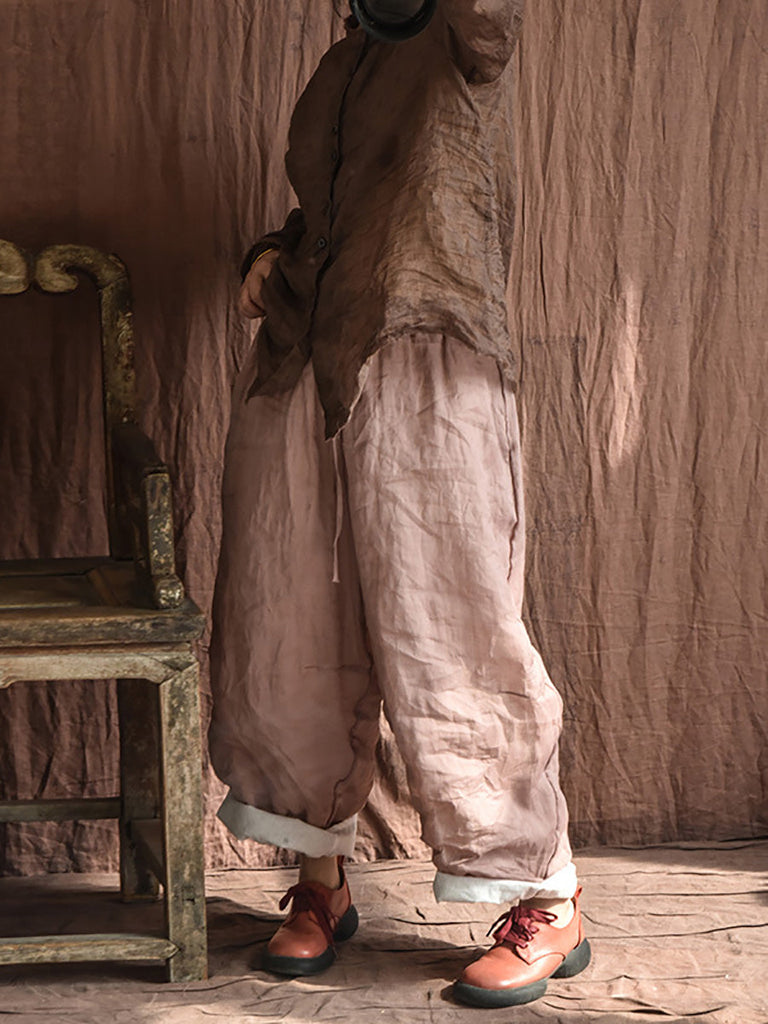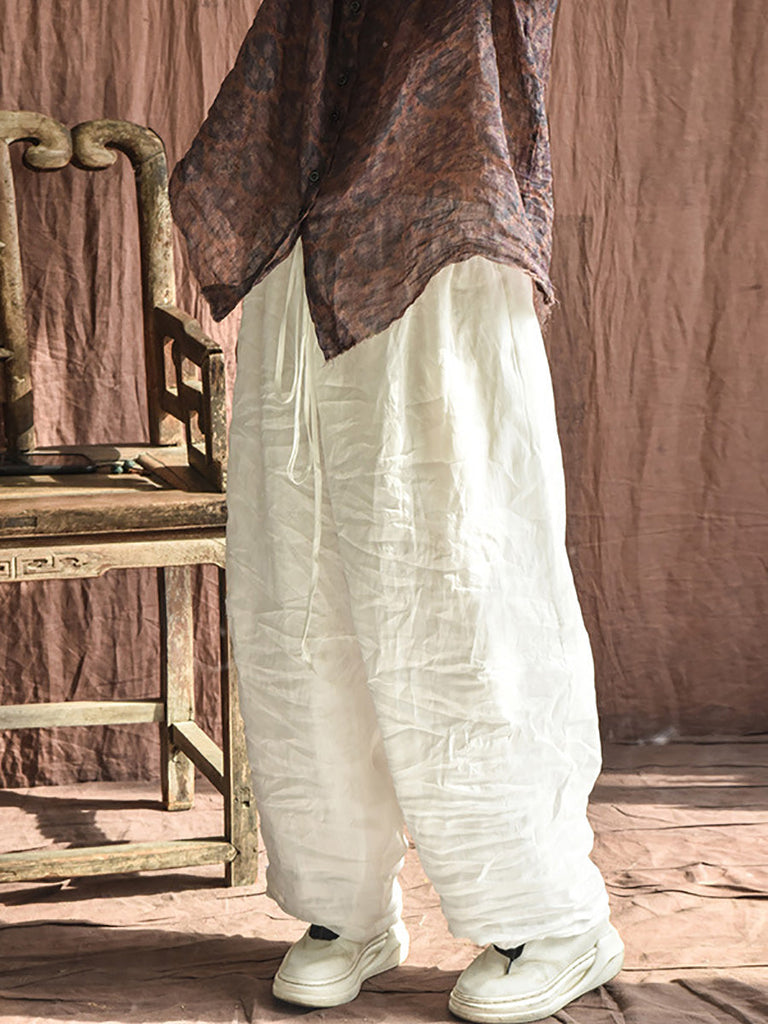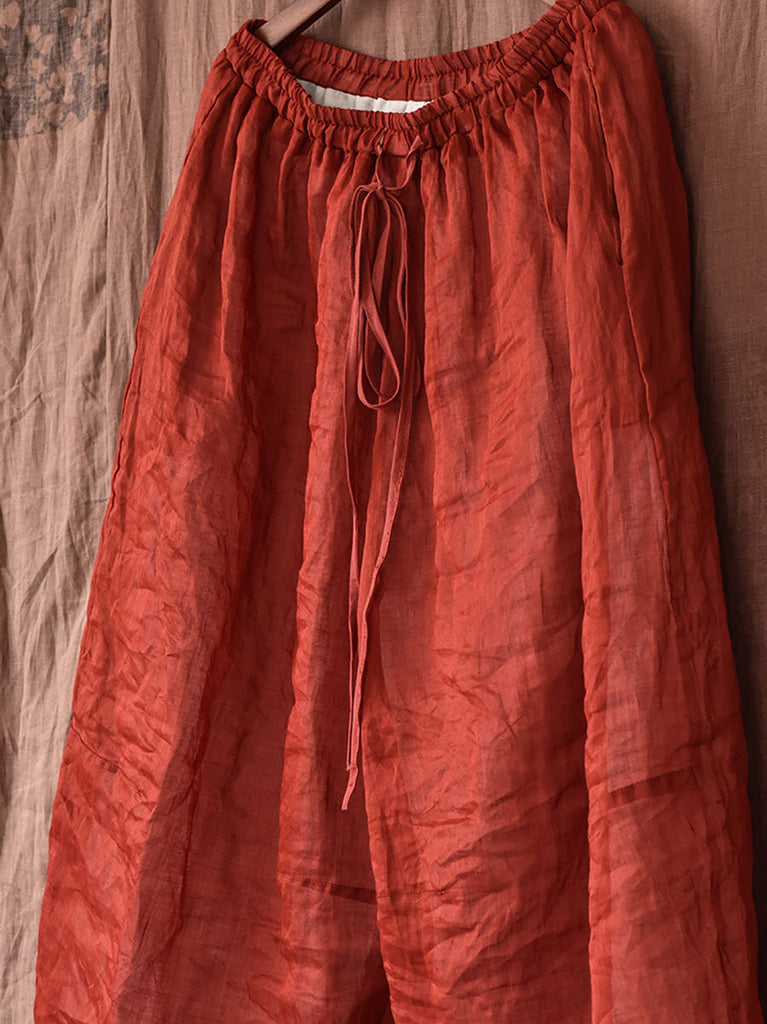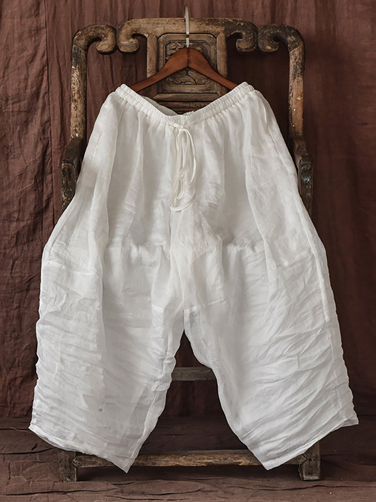 Women Summer Solid Vintage Ramie Thin Harem Pants CX025