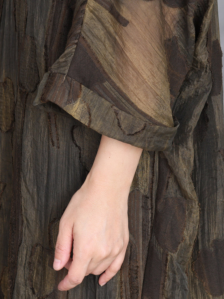 Women Summer Vintae Jacquard Loose Perspective Dress II1005 BUYKUD